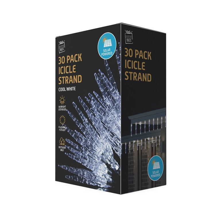 Description: Solar Icicle Lights, 30 LED, Assorted