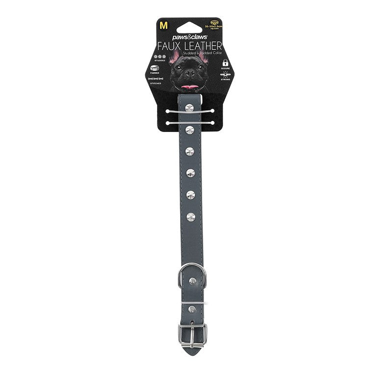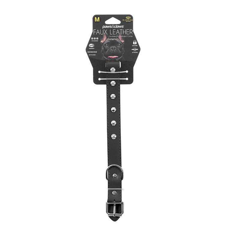 Description: Faux Leather Studded Collar, Medium, 35-50 x 2.5cm, Assorted