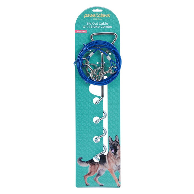 Description: Tie Out Cable w/ Stake Combo, 4m, Assorted