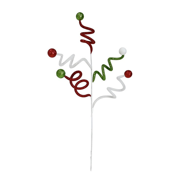 Description: White-Red-Green Swirly Spray with Bauble Tips , Material: Polyfoam , Wire , Product Dimensions: 70cm Height