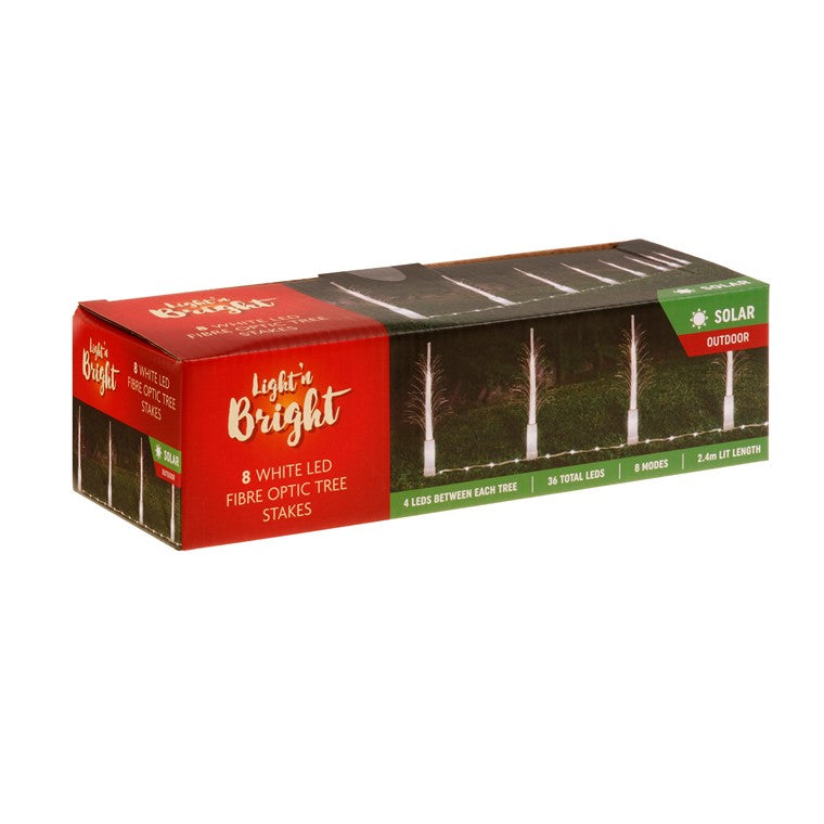 Description: Add a whimsical touch to your outdoor space with our Fibre Optic Tree LED Tree Stakes! These 8pc stakes feature fibre optic lights, creating a unique and eye-catching display. Perfect for adding some holiday cheer to your garden or backyard. Get ready to dazzle your guests!
