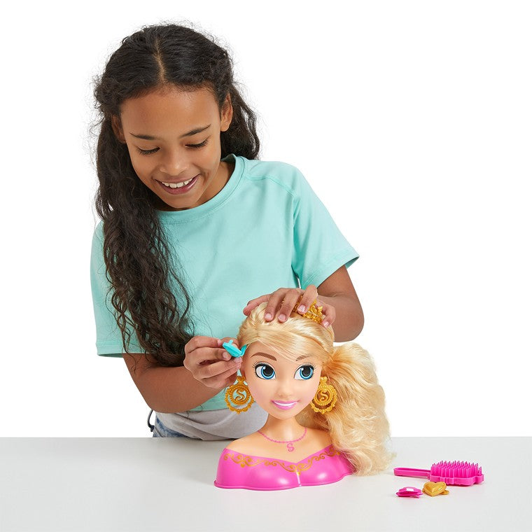 Description: ZURU Sparkle Girlz princess hair styling head includes a beautiful princess styling head for you to play with her beautiful soft hair. You can brush her hair with her majestic brush and decorate with colorful hair highlight accessories. So many styles to make and create!