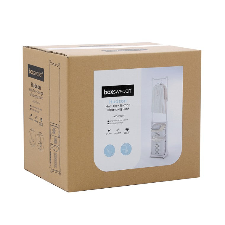 Description: Get organized with the Hudson Multi Tier Storage! With removable baskets and built-in wheels, this 44 x 33 x 174cm storage unit offers versatility and convenience. Hang items from the rack for even more space-saving solutions. Declutter in style (and with ease) today!