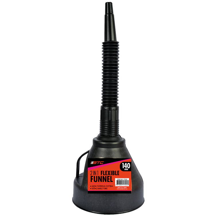 Description: Flexible Funnel 140mm, Black, Flexible Tunnel, Detachable Tube, Mesh Filtering System