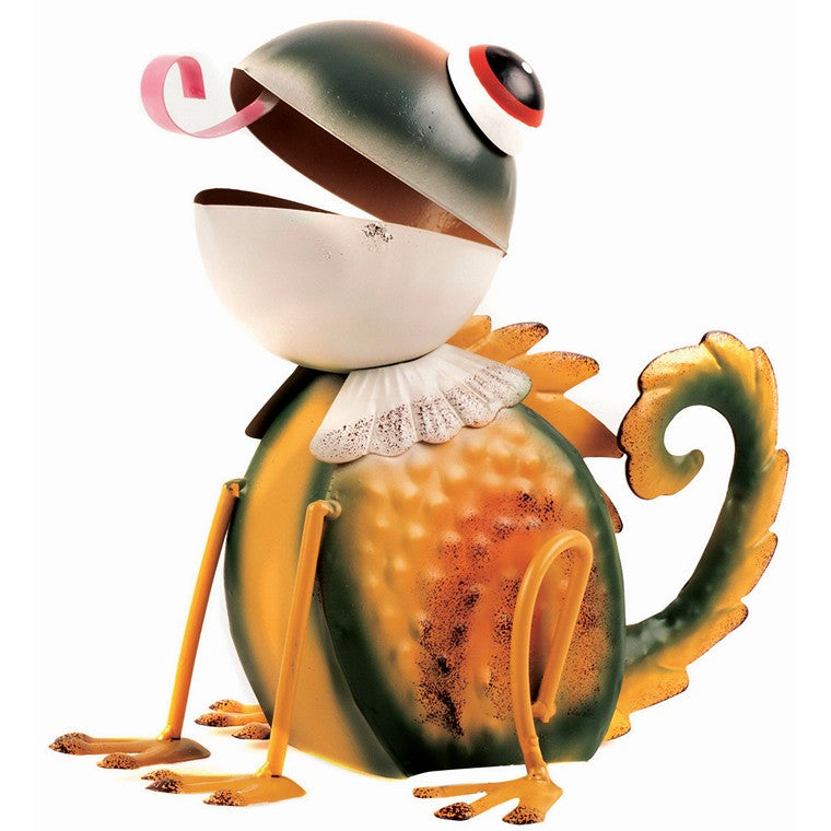 Description: Welcome this charming metal iguana into your garden for a touch of sparkle and character. It's a 15x23x20cm showstopper that will bring a unique, playful atmosphere to your outdoor space. With its intricate details and bright colors, this eye-catching ornament is sure to be a conversation starter!