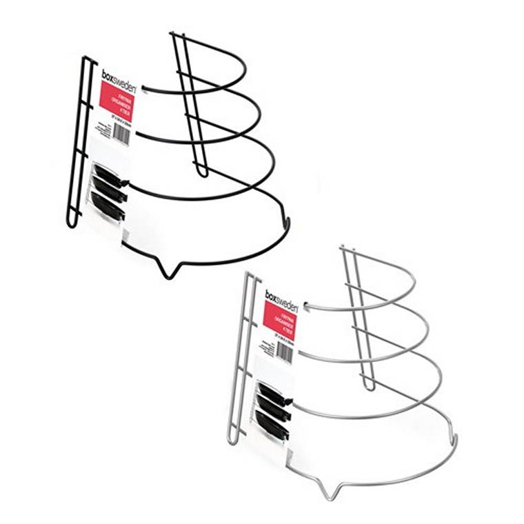 Description: Keep your cupboards organised with our Boxsweden 4 Tier Frypan Organiser. Coming in two assorted colours, our durable wire design fits neatly inside your cupboard to keep your pots and pans in order.