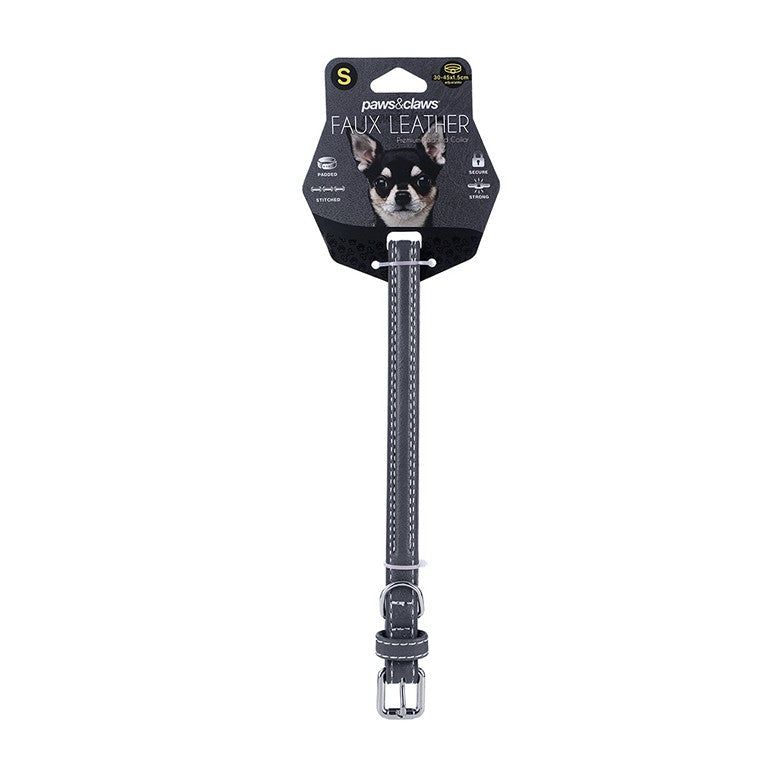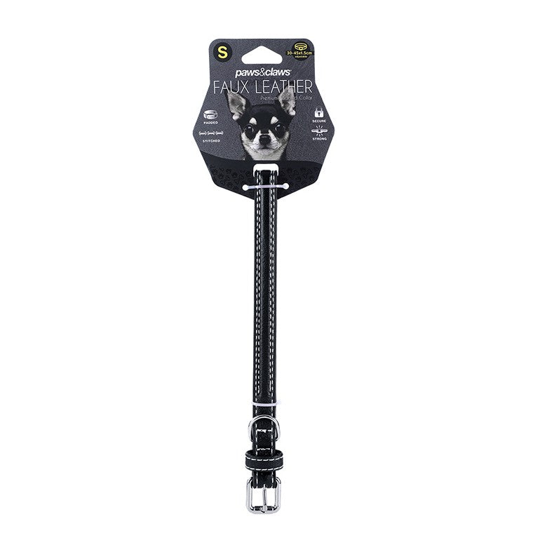 Description: Style your pooch with our Paws & Claws Leather Look Padded Dog Collar With Stitch Detail. Our leather look design is available in three assorted colours, features extra padding for optimal comfort and durable construction to ensure the safety and security of your pet. Available in a variety of sizes to suit most pet breeds.