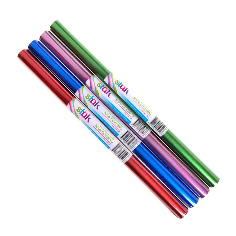 Description: Book Cover, Metallic, Assorted. 45cm x 1m