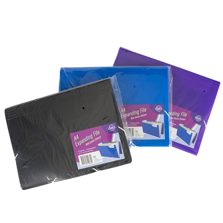 Description: A4 Expanding File w/ Elastic Closure, 13 pockets, Assorted